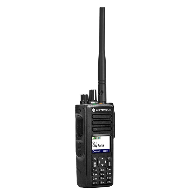 Přenosná profesionální digitální radiostanice(vysílačka) Motorola DP4801 VHF (GPS, BT) typ MDH56JDN9KA1AN (PBE302HE) s velkým barevným grafickým až 5 řádkovým displejem, numerickou klávesnicí, 5ti programovatelnými funkčními a navigačními tlačítky (pro menu), GPS přijímačem, Bluetooth modulem a až 1000 kanálovými pozicemi pro provoz v pásmu 136 – 174 MHz. Profesionální ruční vysílačku Motorola DP 4801 systému Motorola MOTOTRBO™ je možné používat jak pro standardní analogový, tak i pro digitální provoz. V analogovém provozu může Motorola DP 4801 spolupracovat s jakýmikoliv analogovými radiostanicemi a to i s podporou signalizace Select5. Nastavení analogového a digitálního provozu je vázáno na kanálové pozice. Kanálové pozice je možné svazovat do zón. Díky GPS přijímači může radiostanice udávat svou polohu např. dispečinku. Bluetooth slouží pak k bezdrátovému připojení externího příslušenství jako jsou přídavné headsety, klíčovací tlačítko atd. V základním balení Motorola DP 4801 obsahuje kromě vlastní radiostanice i nabíječ, nabíjecí LiIon 1650mAh baterii, UHF anténu, klips na opasek a krytku konektoru externího audia.