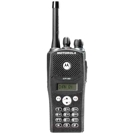 Přenosná 64 kanálová radiostanice (vysílačka) Motorola CP 180 pro pásmo UHF 438 - 470 MHz. Dvě boční a dvě tlačítka na přední straně pod displejem radiostanice (vysílačky) Motorola CP180 lze nastavit softwarově a přiřadit jim funkce jako například indikace stavu baterie, Scan - sledování provozu na více kanálech, Monitor, přepínání vysílacího výkonu, vstup do menu atd. Středové tlačítko slouží jako navigační pro posun v Menu. Plná numerická klávesnice dovoluje přímé zadání např. DTMF volby, nebo editaci volacího seznamu atd. Uživatelsky lze pak přes Menu nastavovat Scan, úroveň vysílacího výkonu, odeslání selektivní volby, podsvícení displeje, zapnutí a vypnutí zvukových upozornění atd. Vysílací výkon radiostanice Motorola CP180 je nastavitelný ve dvou úrovních 1 a 5W s vazbou na kanálovou pozici s možností přepnutí funkčním tlačítkem nebo přes položku Menu.