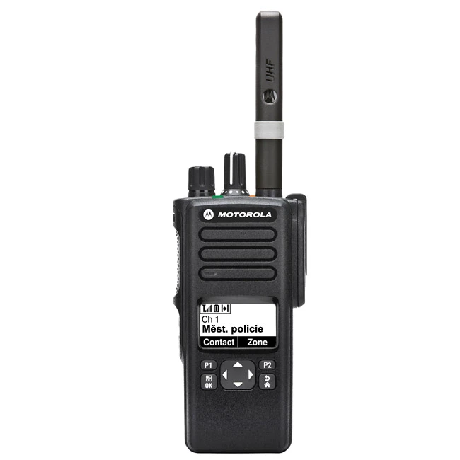 Motorola DP 4600 UHF typ MDH56RDH9JA1AN (PBE502F) je nová přenosná digitální radiostanice(vysílačka) s možností využití 4 řádkového černobílého displeje v kombinaci s funkčními a navigačními tlačítky (pro menu), až 1000 kanálových pozic pro provoz v pásmu 403 – 527 MHz. Profesionální ruční vysílačku Motorola DP4600 systému Motorola MOTOTRBO™ je možné používat jak pro standardní analogový tak i pro digitální provoz. V analogovém provozu může Motorola DP4600 spolupracovat s jakýmikoliv analogovými radiostanicemi a to i s podporou signalizace Select5. Nastavení analogového a digitálního provozu je vázáno na kanálové pozice. V základním balení Motorola DP 4600 obsahuje kromě vlastní radiostanice i nabíječ, nabíjecí NiMh 1400mAh baterii, UHF anténu, klips na opasek a krytku konektoru externího audia.