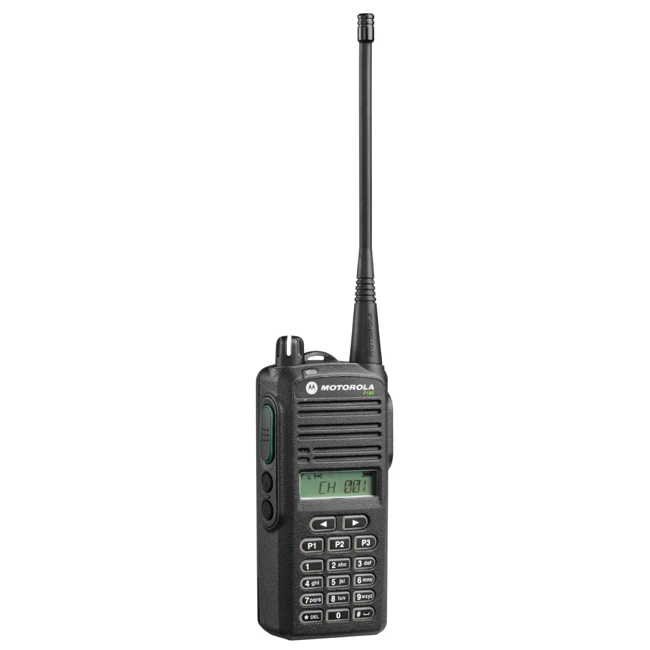 Přenosná 99 kanálová radiostanice (vysílačka) Motorola P 185 pro pásmo UHF 435 - 480 MHz. Dvě boční a tři tlačítka na přední straně pod displejem radiostanice (vysílačky) Motorola P165 lze nastavit softwarově a přiřadit jim funkce jako například Scan - sledování provozu na více kanálech, Monitor, přepínání vysílacího výkonu, vypnutí a zapnutí PL/DP na kanálové pozici, zapnutí a definování utajovače hovoru, nebo pro zámek kláves atd. Tlačítka s šipkami slouží pro přepínání kanálových pozic a pro výběr v nastavování funkcí. Funce pro tlačítka může uživatel v programovacím režimu sám definovat. Na čelní straně radiostanice je dále plná numerická klávesnice pro možnost přímého zadání DTMF volby.