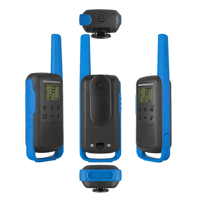 Vysílačky Motorola Talkabout™ T62 Blue (model B6P00811LDRMAW) s dosahem do 8 km** patří do střední třídy v řadě PMR446 hobby vysílaček určených pro volnočasové použití vyráběných společností Motorola Solutions. PMR radiostanice Motorola T62 nabízí využití 16 kanálů v kombinaci s 121 kódy, vysílání ovládané hlasem VOX/iVOX (obdoba hands-free) atd. Nabíjení je řešeno přes microUSB konektor. Motorola Talkabout™ T62 nabízí i možnost připojení externích audio souprav (sluchátek) shodných i se staršími typy Motorola PMR vysílaček. Motorola T62 je další PMR446 vysílačkou od Motoroly, která nabídne vysokou odolnost, kvalitní přenos hlasu a dosah až 8 km (dle podmínek použití). Vysílačky Motorola TALKABOUT T62 tak jsou dobrou volbou pro bezplatnou komunikaci ve volném čase, při sportu nebo pro občasné použití pro práci. Vysílačky Motorola TALKABOUT T62 PMR446, Red Twin Pack WE jsou dodávány v balení které obsahuje kromě 2 ks vysílaček v modro-černém provedení i dvě nabíjecí NiMH 800mAH aku baterie, klipsy na opasek, nabíječ (230V AC EURO) s dvěma USB koncovkami a 16 ks rozlišovacích nálepek.
