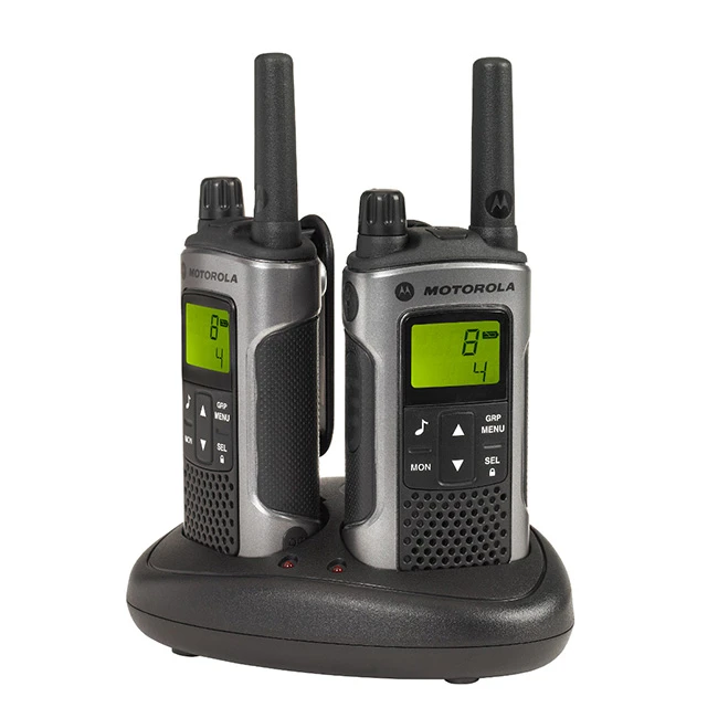 Vysílačky(radiostanice) Motorola TLKR T80 (typ P14MAA03A1BE) se prodávají v balení (krabici), které obsahuje dvě radiostanice Motorola TLKR-T80 (jeden pár vysílaček), dva nabíjecí aku packy 550 mAh NiMH, nabíječ pro dvě vysílačky (lze nabíjet i samostatné baterie), dva klipsy na zavěšení radiostanice na opasek a návod k obsluze. Cena je uváděna za kompletní balení (krabici).