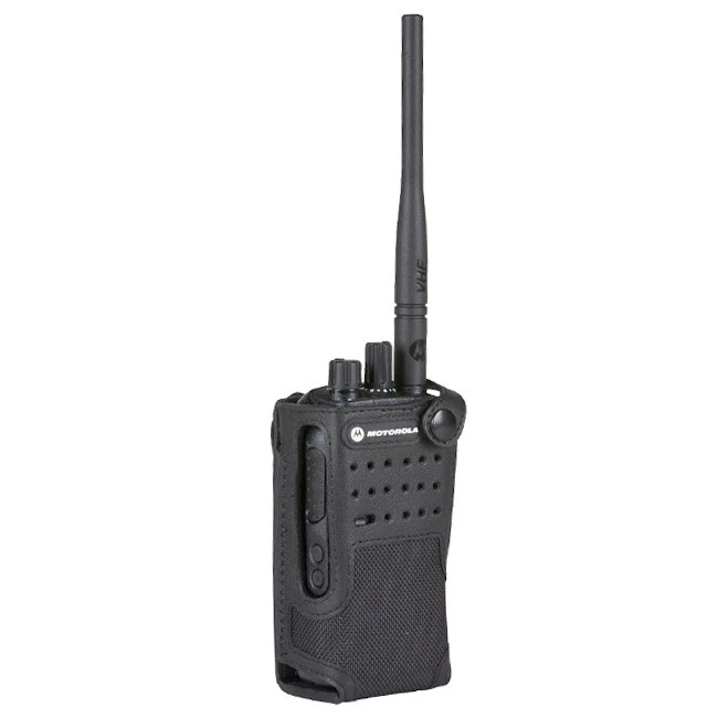 Lehké pouzdro z nylonové tkaniny a kožených doplňků s okem pro 3" opasek typ PMLN5870 pro profesionální digitální radiostanice (vysílačky) Motorola DP2400 řady v provedení bez displej - DP2400e a DP2400.