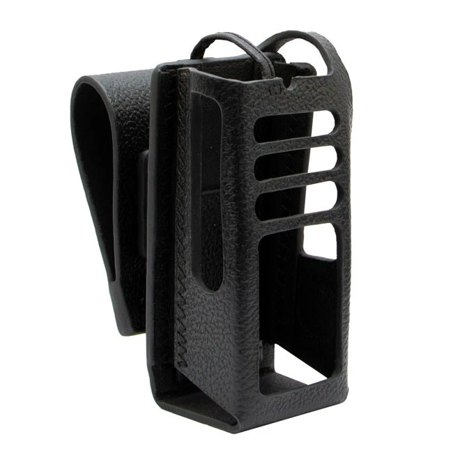 Pouzdro typ PMLN8662 pro profesionální ruční vysílačky Motorola R5 LKP (s displejem) je vyrobené z odolné tvrdé kůže ,na zadní straně má otočné  oko pro nasazení na opasek do šíře 3" (7,6 cm).