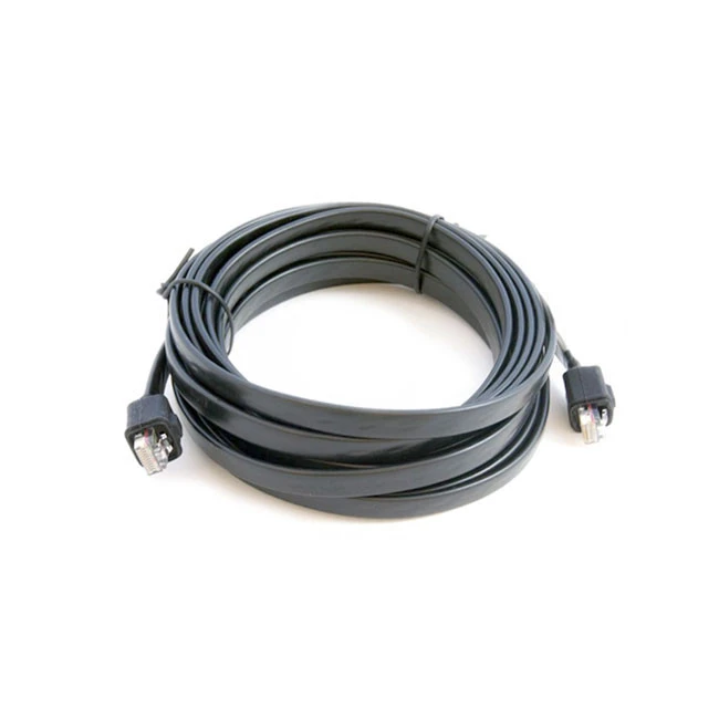Plochý propojovací kabel RKN 4079 je zakončen RJ konektory vč. pryžových krytek.