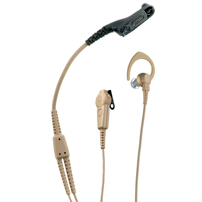 Béžové sluchátko do ucha, mikrofon kombinovaný s vysílacím (PTT) tlačítkem. Profesionální audio souprava RLN5881 pro skryté nošení a tedy i nepozorované používání radiostanice (vysílačky) Motorola řady DP systému MOTOTRBO. Dvoušňůrové provedení audio soupravy RLN5881 dovoluje více možností použití, např. mikrofon s PTT je možné umístit do rukávu. Sada RLN5881 je dodávána v béžové (tělové) barvě.